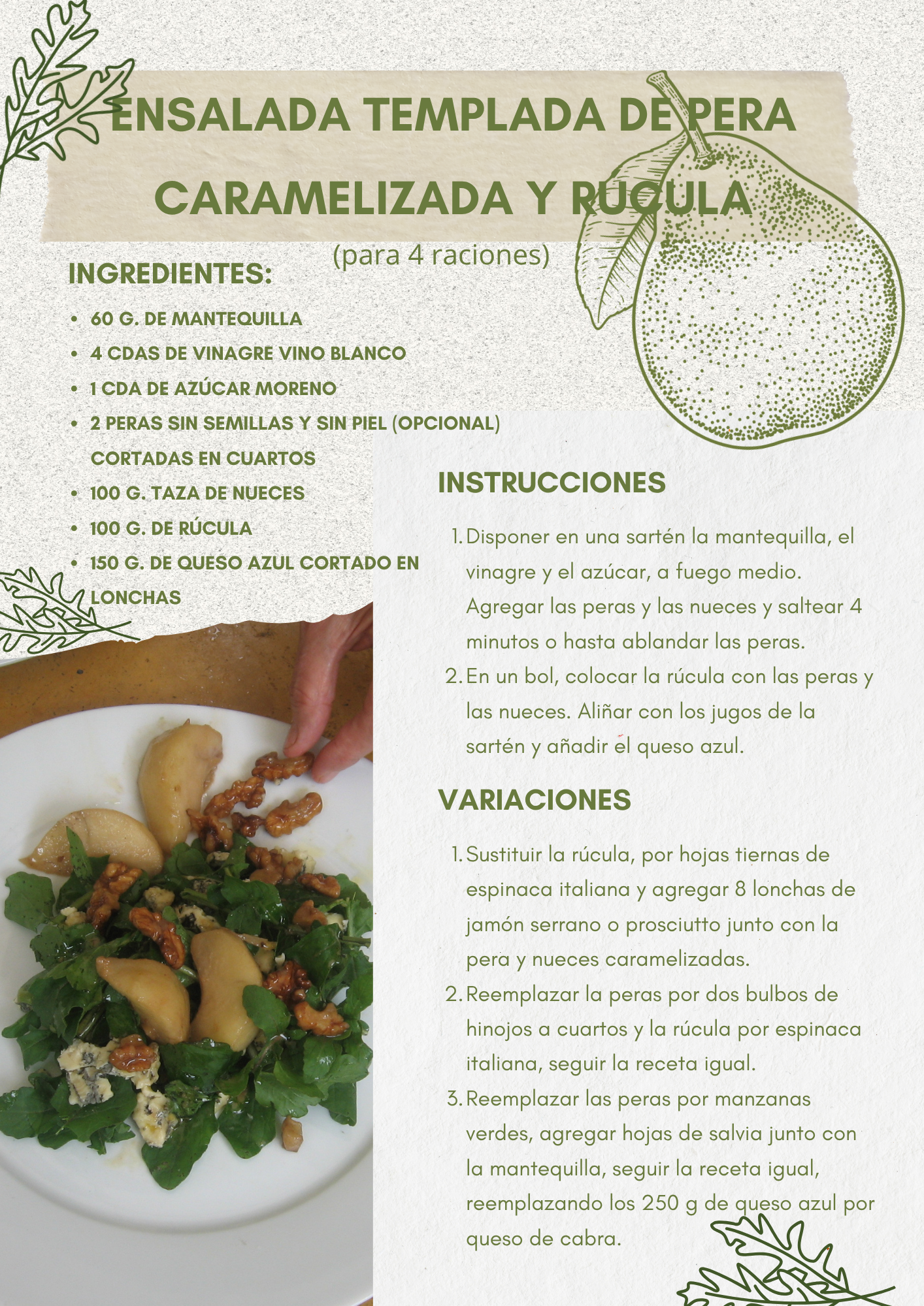 ENSALADA TEMPLADA DE PERA CARAMELIZADA Y RÚCULA 27 mar. Escrito por Valentina Inglessis Valentina Inglessis